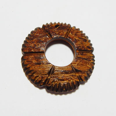 This handcrafted pendant is made from sustainably sourced coconut shell, offering a unique blend of rustic charm and eco-conscious craftsmanship. Lightweight yet durable, it features organic textures and natural patterns that make each piece distinct. Ideal for spiritual purposes, jewelry creation, or as a standalone accessory, this pendant embodies timeless elegance and sustainability, perfect for those who value nature-inspired designs.