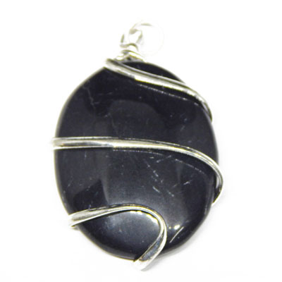 Wire Wrapped Black Agate Oval Pendant